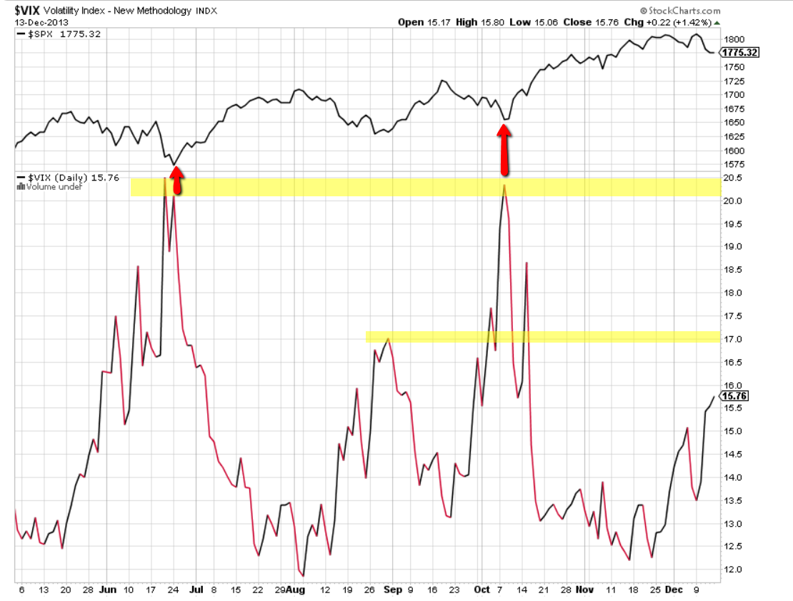 The Advance - Decline line does continue to show an underwhelming divergence, however as I have highlighted, the last correction almost equaled that of the previous which occured during the debt debate and government shutdown. So although the bearish divergence persists there has been no follow through to break the upwards momentum thus far.